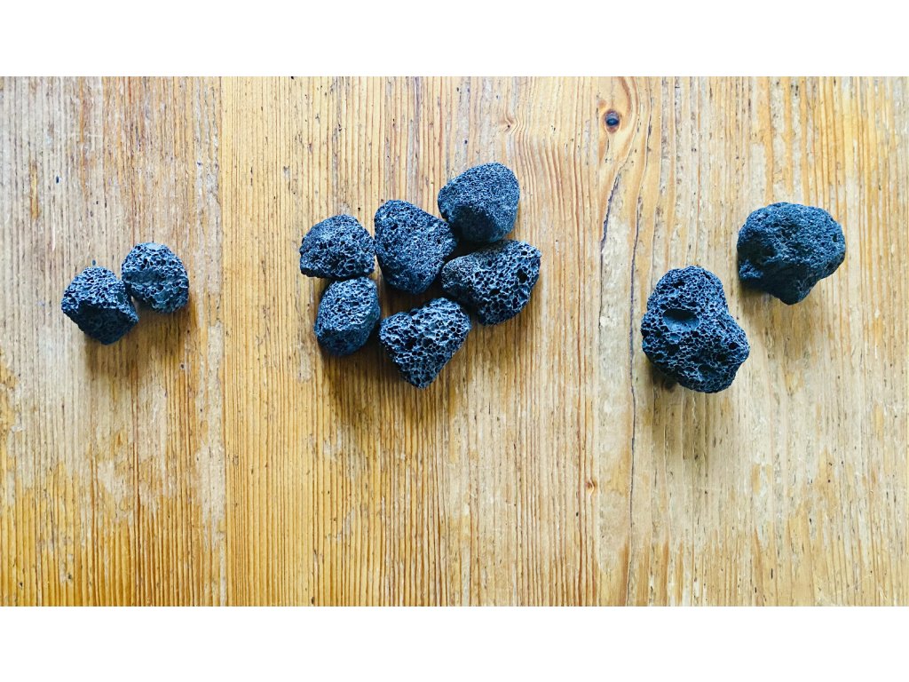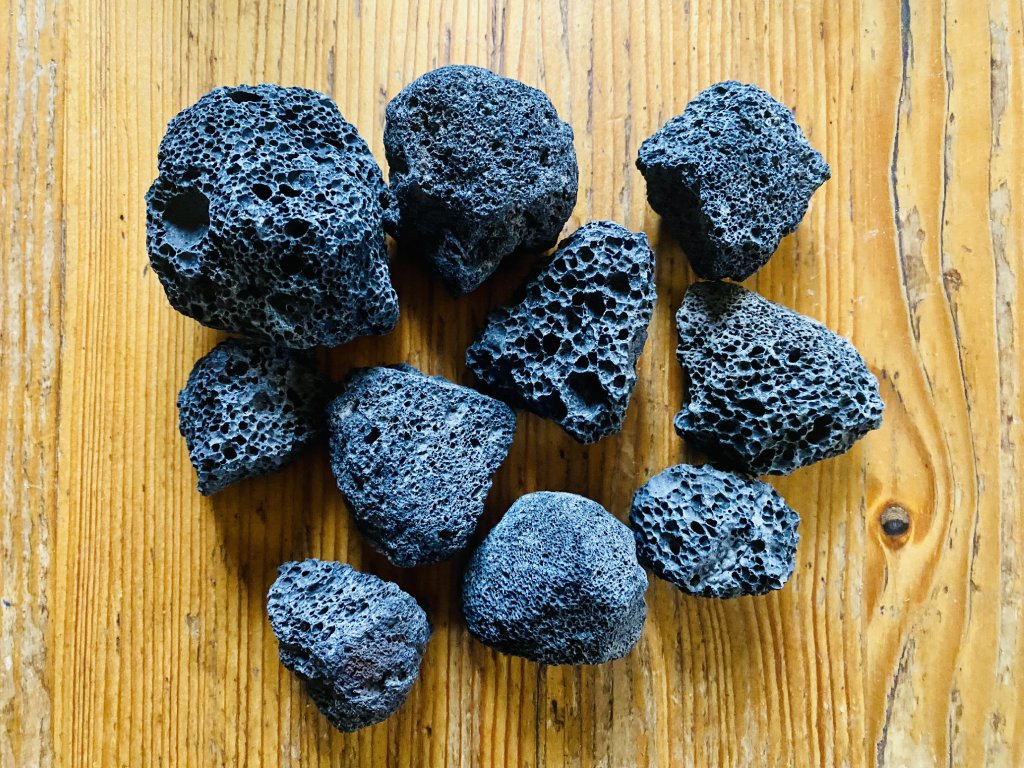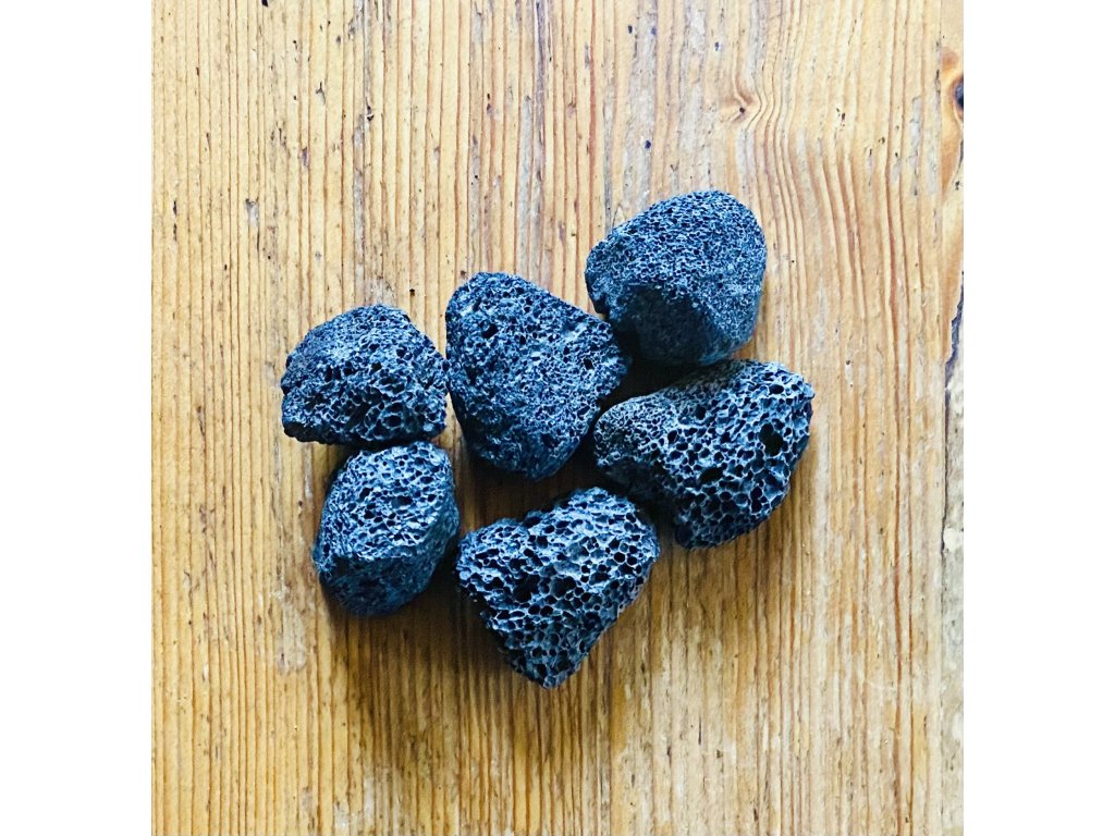 Přírodní sopečný kámen různých tvarů a velikostí.